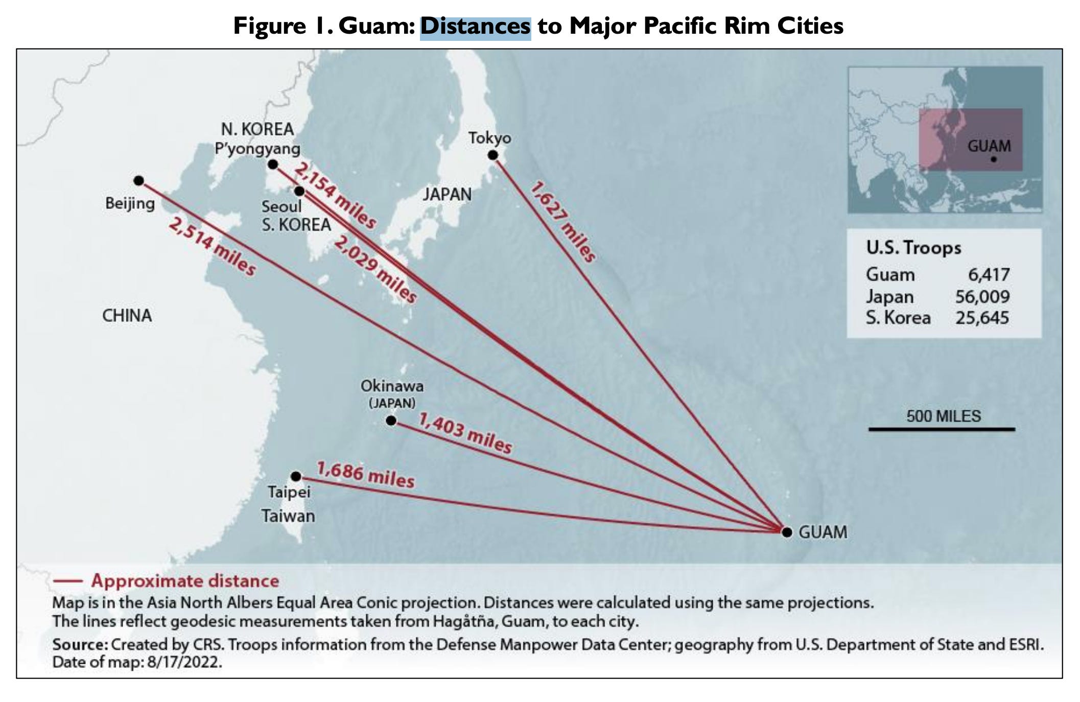 The “tyranny of distance” in the Indo-Pacific. Guam is as far from Taipei and Tokyo as New York is from Salt Lake City. Resupplying U.S. and allied forces dispersed across this huge area is an enormous task.